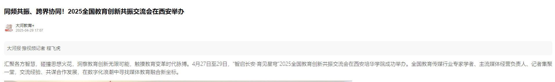 汇聚各方智慧,碰撞思想火花,洞察教育创新无限可能,触摸教育变革时代脉搏。2025年4月27日﹣29日,“智启长安·育见星穹”2025全国教育创新共振交流会在西安培华学院成功举办。