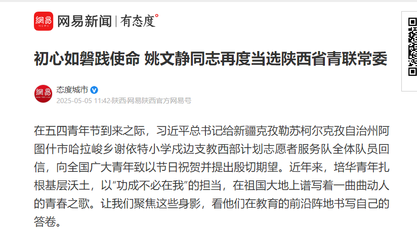姚文静同志再度当选陕西省青联常委