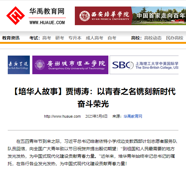 经党和国家功勋荣誉表彰工作委员会同意,共青团中央、全国青联授予在科技创新、乡村振兴、绿色发展、社会服务、卫国戍边等领域表现突出的新时代青年“新时代青年先锋奖”。西安培华学院2021届校友贾博涛获“新时代青年先锋奖”。