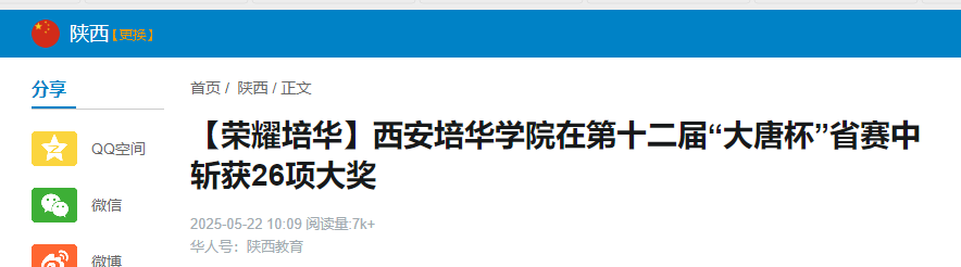 华人头条:【荣耀培华】西安培华学院在第十二届“大唐杯”省赛中斩获26项大奖