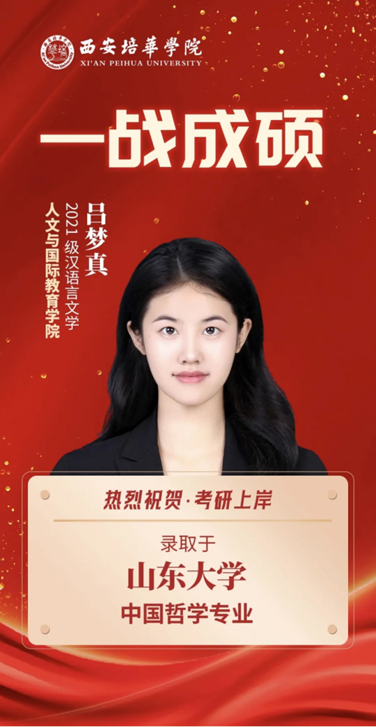 半夏的风掀起新的扉页,西安培华学院人文与国际教育学院2021级汉语言文学专业的吕梦真,携着23万字浸透墨香的备考笔记,以初试第二、复试第三、总分397的优异成绩,叩开山东大学儒学高等研究院中国哲学专业之门,入选中华优秀传统文化专项。