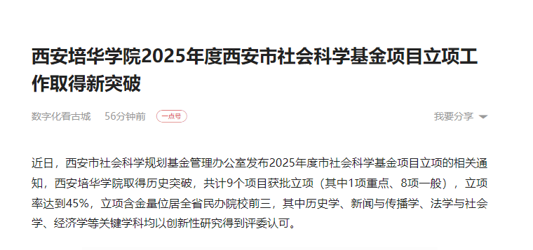一点资讯:西安培华学院2025年度西安市社会科学基金项目立项工作取得新突破