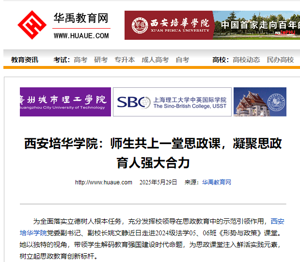 此次西安培华学院校领导带头走进思政课堂,不仅创新了教学形式,更在全校范围内形成了以上率下的思政教育合力。学校将持续深化思政课程改革,构建校领导讲形势、专业教师讲理论、优秀校友讲实践的立体化教学模式,为培养德智体美劳全面发展的社会主义建设者和接班人提供坚实保障。