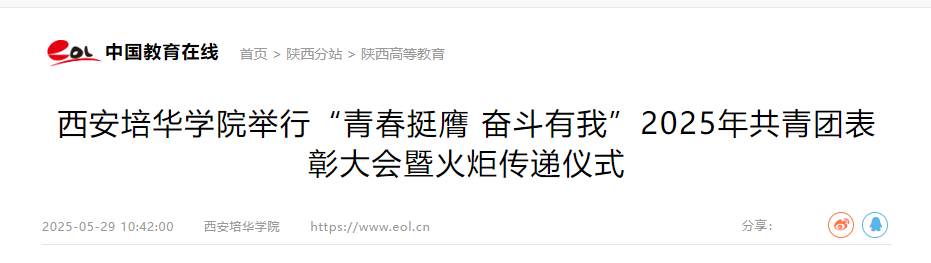 青春挺膺,奋斗有我。5月27日,西安培华学院“青春挺膺 奋斗有我”2025年共青团表彰大会暨火炬传递仪式在长安校区举行。