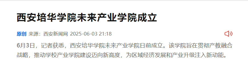 5月30日下午,西安培华学院召开未来产业学院成立大会暨产业学院建设工作推进会。全体校领导,各院(部)及中心相关负责人,各系主任及专业带头人齐聚一堂,共同见证这一重要时刻。本次大会旨在深入贯彻国家产教融合战略,落实《国务院办公厅关于深化产教融合的若干意见》精神,推动学校产业学院建设迈向新高度,为区域经济发展和产业升级注入新动能。