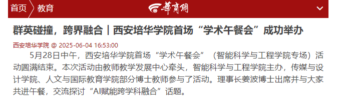 华商网:群英碰撞,跨界融合︱西安培华学院首场“学术午餐会”成功举办