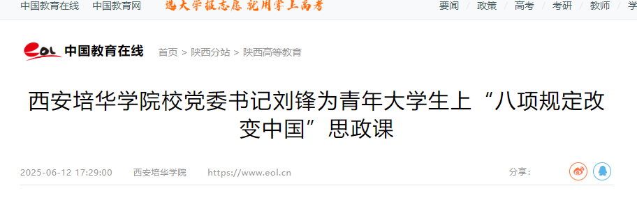 为推动学习贯彻习近平新时代中国特色社会主义思想和深入贯彻中央八项规定精神学习教育的持续深入开展,加强西安培华学院青年大学生的思想政治教育工作,6月5日,西安培华学院党委刘锋书记以“八项规定改变中国”为主题,在博远楼教室为2023级会计07班,2023级护理专业05、06班的学子上了一堂严肃而生动的思政课。