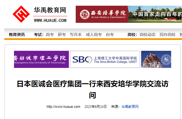 6月23日,日本医诚会医疗集团一行来西安培华学院交流访问。日本医诚会医疗集团董事⻓代理谷信幸、常务董事长野口正吾、Intelligent Healthcare股份有限公司常务董事尾之井洋、Holonics Healthcare股份有限公司常务董事浅井义雄、统括部长柏木隆史、信息系统部总管代理佐伯俊明、海外事业部主任金子庆姫、井之上健康管理(西安)有限公司总经理李昊阳、总经理助理黄钟瑶、中大国际集团国际医院项目经理王博文、西安中大国际医院院长李富军与西安培华学院理事长姜波,医学院院长扈国栋,副院长别蓓蓓,护理系主任张飒乐,副主任段思柳、李安琪,人文与国际教育学院日语专业李国栋教授出席座谈会。座谈会由西安培华学院国际交流中心主任王鹏主持。