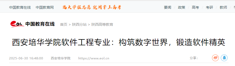 中国教育在线:西安培华学院软件工程专业:构筑数字世界,锻造软件精英