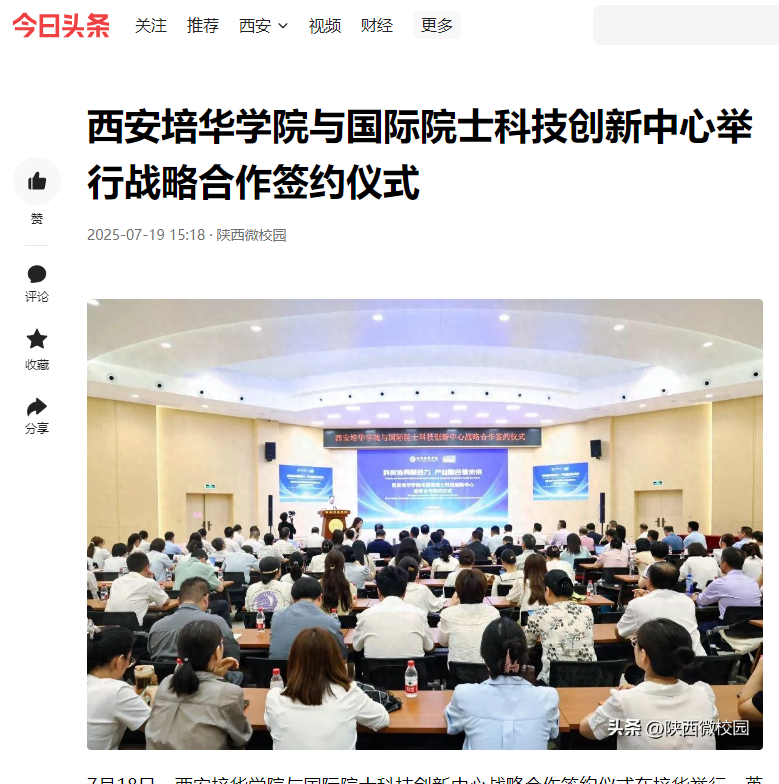 仪式上,西安培华学院校长李映方分别与国际院士科技创新中心副主任赵文杰、德国莱茵科斯特集团陕西公司总经理刘明辉签署战略合作协议。国际院士科技创新中心代表陈登奇、王鼎、赵泽阳,陕西省高校技术转移中心主任田鹏,长安区科技创新中心主任赵鹏等十余位嘉宾现场见证。此次合作聚焦人才培养、科研创新与成果转化,旨在打造“产学研用”一体化平台,为区域经济高质量发展注入新动能。