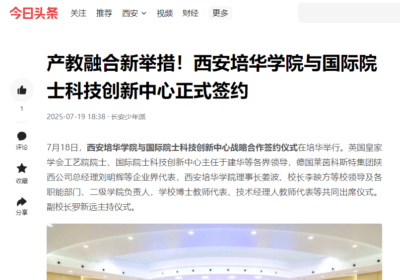 仪式上,西安培华学院校长李映方分别与国际院士科技创新中心副主任赵文杰、德国莱茵科斯特集团陕西公司总经理刘明辉签署战略合作协议。国际院士科技创新中心代表陈登奇、王鼎、赵泽阳,陕西省高校技术转移中心主任田鹏,长安区科技创新中心主任赵鹏等十余位嘉宾现场见证。此次合作聚焦人才培养、科研创新与成果转化,旨在打造“产学研用”一体化平台,为区域经济高质量发展注入新动能。