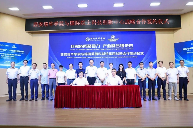 仪式上,西安培华学院校长李映方分别与国际院士科技创新中心副主任赵文杰、德国莱茵科斯特集团陕西公司总经理刘明辉签署战略合作协议。国际院士科技创新中心代表陈登奇、王鼎、赵泽阳,陕西省高校技术转移中心主任田鹏,长安区科技创新中心主任赵鹏等十余位嘉宾现场见证。此次合作聚焦人才培养、科研创新与成果转化,旨在打造“产学研用”一体化平台,为区域经济高质量发展注入新动能。