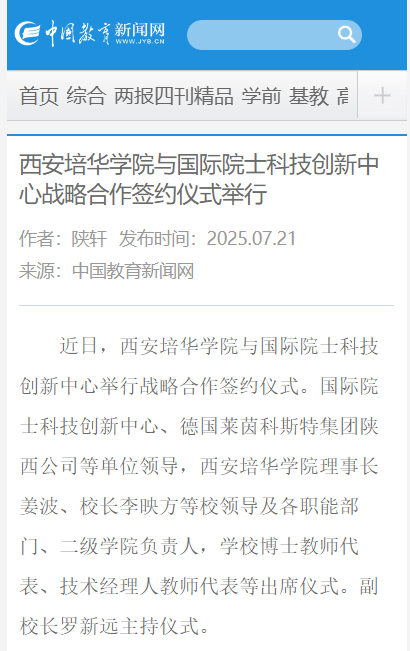 据悉,西安培华学院始终积极践行手脑并用、做学合一的职教理念,将深化产教融合、校企合作作为立校之本与发展引擎。多年来,通过精准对接区域产业发展需求,培华学院在引育高端人才和搭建育人平台方面取得了显著成效。一方面,学校大力实施人才强校战略,已成功引进包括6位两院院士及国际知名院士在内的顶尖学者加盟,为学科建设、科研攻关和高水平人才培养注入了强大的智力支撑。另一方面,学校积极探索协同育人新模式,聚焦重点产业领域,联合行业领军企业,已高质量建成并投入运行12个特色鲜明的现代产业学院。