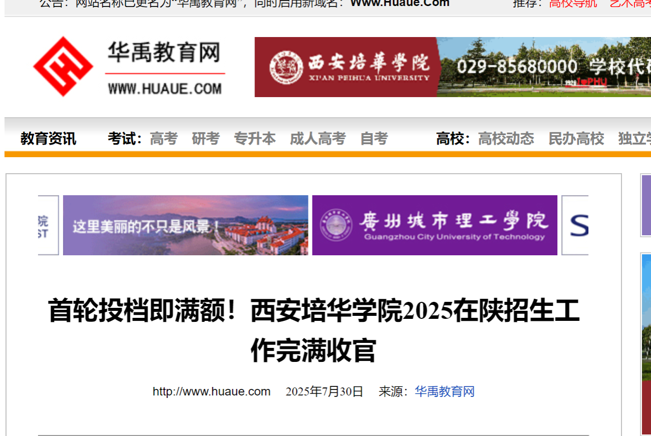 2025年,西安培华学院在陕本科(包括艺术、体育、普通类本科)招生工作完满收官,共录取3153人,所有批次所有专业组均投档即满额,招生规模再创历史新高,生源质量稳居全省同类院校前列!