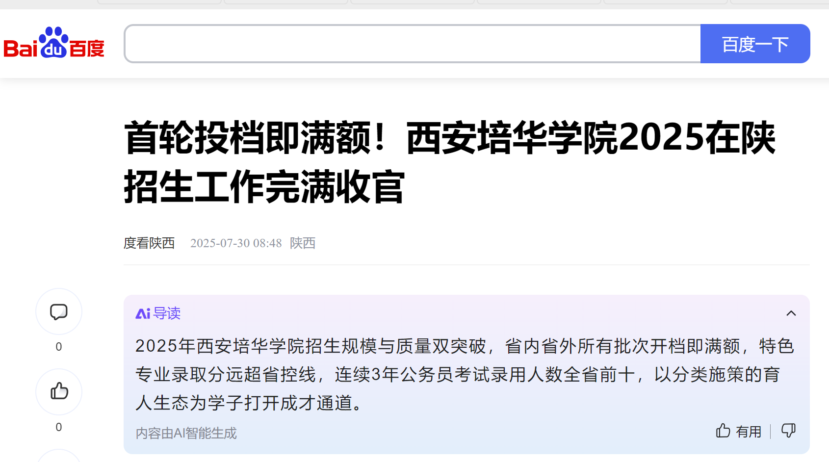 2025年,西安培华学院在陕本科(包括艺术、体育、普通类本科)招生工作完满收官,共录取3153人,所有批次所有专业组均投档即满额,招生规模再创历史新高,生源质量稳居全省同类院校前列!