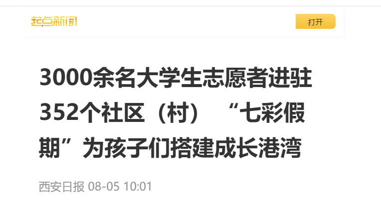 从非遗文化传承到科技实践探索,从“清凉一夏”亲子实践活动到暑期特色课堂,每一项活动都凝聚着大学生志愿者的专业和热情。今年暑期,团市委以“七彩假期”爱心托管班为载体,组织动员3000余名大学生志愿者进驻352个社区(村),为孩子们搭建起一个充实、快乐、有意义的成长港湾。
