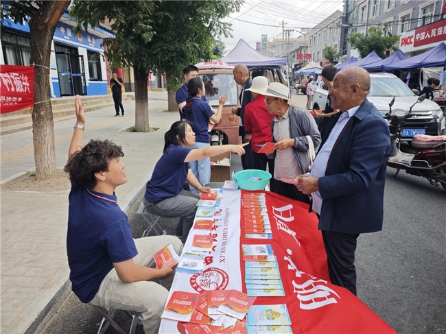 在热闹非凡的土桥镇集市上,实践队设立了普法摊位,队员们用通俗易懂的方言为群众讲解《消费者权益保护法》。他们结合集市交易中的常见场景和实际案例,深入浅出地阐释消费者的各项权利以及维权途径,让法律知识变得更加贴近生活、易于理解。活动现场,共发放定制普法物资 2000余份,覆盖商贩 200余家。村民王大爷手举着印有法治宣传标语的脸盆,高兴地说:“赶集的时候就能学法律,还能拿到这么实用的奖品,这样的普法活动既有趣又有意义,让我们记得牢!”这种将法治宣传与集市文化相结合的创新方式,不仅吸引了众多群众的积极参与,还有效提高了法治宣传的效果和影响力,使法律知识真正深入人心。