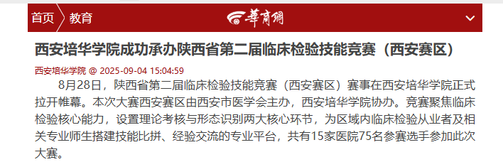 西安培华学院作为承办方,充分发挥医学类专业办学优势,提前统筹竞赛场地、仪器设备与考务团队,确保赛事规范有序进行。来自西安赛区各医疗机构、医学院校的参赛选手同台竞技,在比拼中夯实专业基础、提升技能水平,进一步激发了临床检验领域从业者钻研技术、精进业务的热情,为推动区域临床检验学科发展、提升基层医疗检验服务能力注入动力。