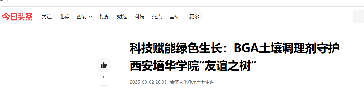 展望未来,随着BGA土壤调理技术的持续推广与创新,期待其在更多生态场景中发挥效能——从校园绿化到荒漠治理,从农业生产到城市生态修复,以科技力量激活土壤活力、守护植物生长,让更多“友谊之树”“希望之树”扎根沃土、茁壮成长,为推动绿色可持续发展、建设美丽家园注入源源不断的科技动能。