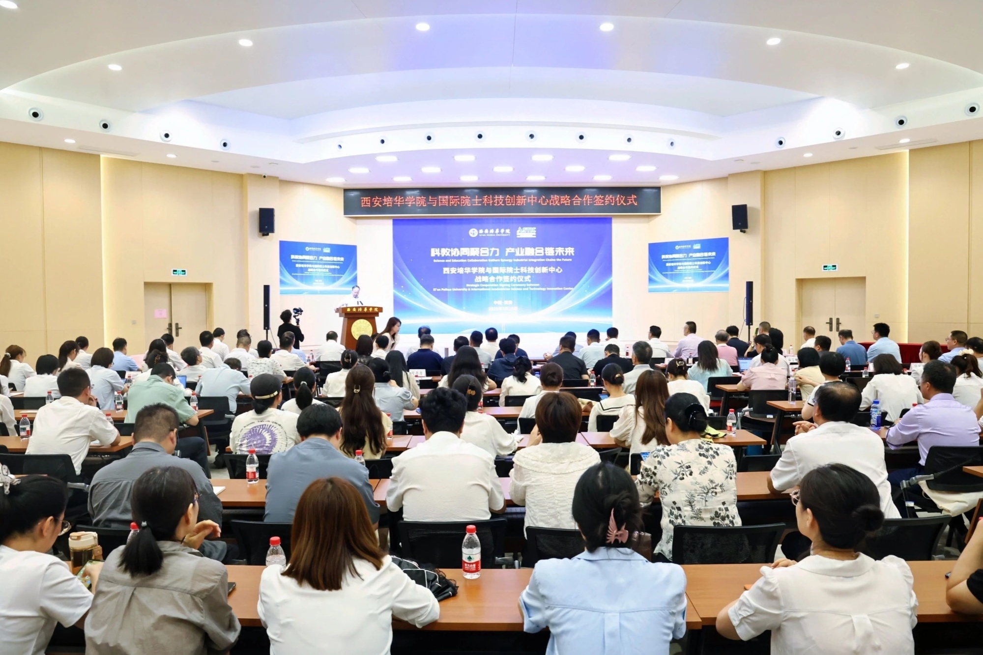 7月18日,西安培华学院与国际院士科技创新中心战略合作签约仪式举行。英国皇家学会工艺院院士、国际院士科技创新中心主任于建华等各界领导,德国莱茵科斯特集团陕西公司总经理刘明辉等企业界代表,西安培华学院理事长姜波、校长李映方等校领导及各职能部门、二级学院负责人,学校博士教师代表、技术经理人教师代表等共同出席仪式。副校长罗新远主持仪式。