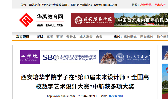 华禹教育网:西安培华学院学子在“第13届未来设计师・全国高校数字艺术设计大赛”中斩获多项大奖