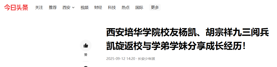 校友杨凯、胡宗祥载誉而归,培华学子以实际行动诠释家国担当。学校始终秉持着立德树人的根本任务,将家国情怀融入到教育的每一个环节,激励着一代又一代培华学子,将个人理想与国家命运紧密相连。未来,愿培华学子以榜样为炬,让青春在报国路上绽放光彩。