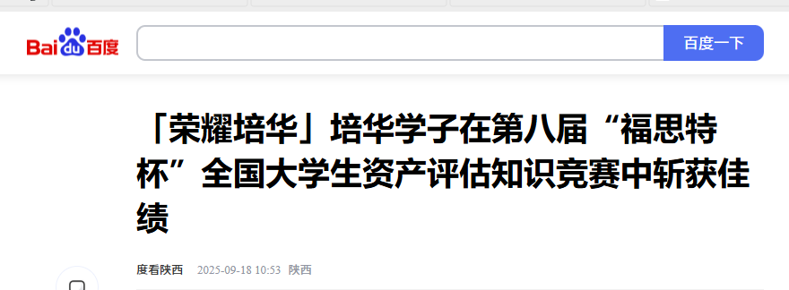 2025年9月12日-14日,第八届“福思特杯”全国大学生资产评估知识竞赛决赛在重庆工商大学举行。西安培华学院学子沉着应战斩获全国三等奖,充分展现了扎实的理论功底、敏锐的分析能力和良好的竞技风貌。