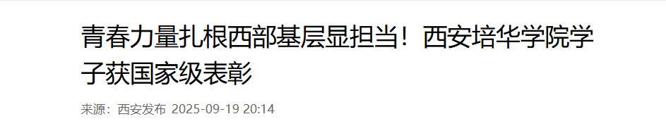 “到西部去,到基层去,到祖国最需要的地方去!”这句铿锵誓言,正由西安培华学院的青年学子们用行动践行。近日,该校5名毕业生荣获全国大学生志愿服务西部计划“考核优秀等次志愿者”称号,学校同步获评“优秀等次项目办”,国家级荣誉的背后,是培华学子扎根西部、服务基层的奉献足迹,更是他们“向下扎根、向上生长”的青春写照。