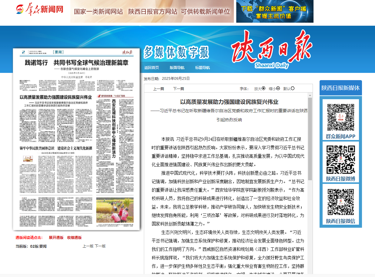 来源:陕西日报,2025年9月25日02 要闻版