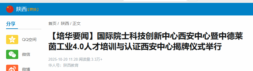 陕西省工业和信息化厅二级巡视员羌薇指出,两个中心精准把握产业“痛点”,以“国际院士科技创新中心西安中心”提供国际智慧破解“卡脖子”难题,“中德莱茵工业4.0人才培训与认证西安中心”输送技术尖兵支撑智能制造,形成“智力+技能”双轮驱动。省工信厅将全力支持中心发展,搭建对接桥梁,提供资源保障,期待其成为全省产教融合的示范标杆和服务阵地。
