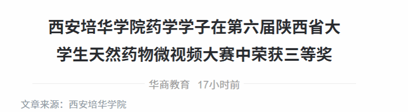 华商头条:西安培华学院药学学子在第六届陕西省大学生天然药物微视频大赛中荣获三等奖