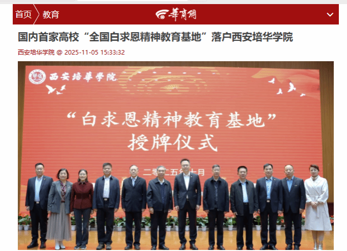 华商网:国内首家高校“全国白求恩精神教育基地”落户西安培华学院