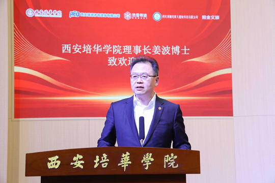 会议伊始,西安培华学院理事长姜波博士致辞,他表示,体育融创产业学院的成立是学校响应国家体育强国战略、深化产教融合的重要举措,旨在打破高校与产业间的壁垒,通过“校-企-协”三方联动,培养适应体育产业发展需求的应用型人才,为陕西民办高等教育体育创新发展贡献力量。