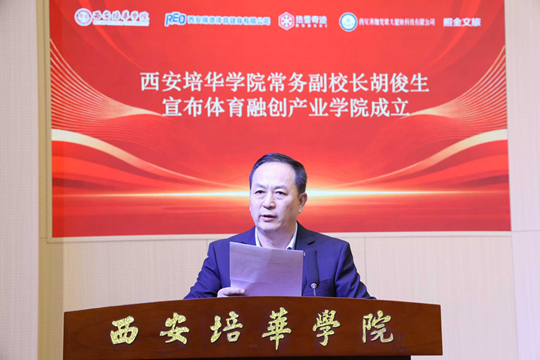 西安培华学院常务副校长胡俊生宣布体育融创产业学院正式成立。