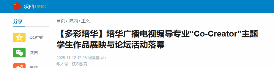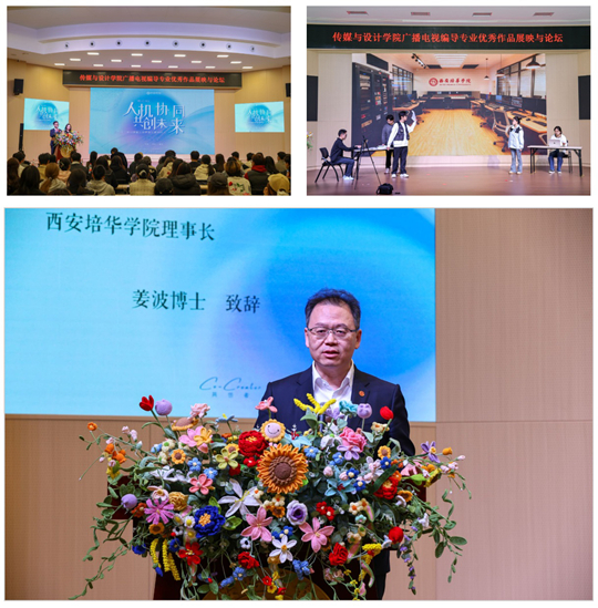 活动开篇,师生打造的专业实景演出与 AI 融合先导片《CO-CREATOR》震撼亮相。作为西部地区高校影视专业首部全流程 AI 融合短片,该片构建了人机协同创作矩阵,同时嘉宾桌上的 AR 小卡片可随时回放短片,让科技互动贯穿全程。西安培华学院理事长姜波博士在致辞中肯定了广编专业在 AI 时代的创新探索,鼓励学子以人文之心驾驭科技之力。