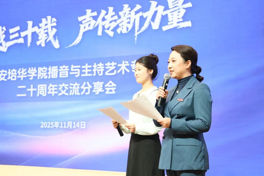 2025年11月14日,“跨越三十载·声传新力量”西安培华学院播音与主持艺术专业二十周年交流分享会在明德楼报告厅举行。活动邀请与学校结缘30载的中央广播电视总台播音指导,原中央电视台《新闻联播》栏目主播、播音部主任李瑞英作为特邀主讲嘉宾重返培华,为现场三百余名师生带来一场高规格的学术与思想盛宴。