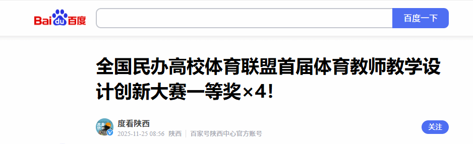 百度:全国民办高校体育联盟首届体育教师教学设计创新大赛一等奖×4!