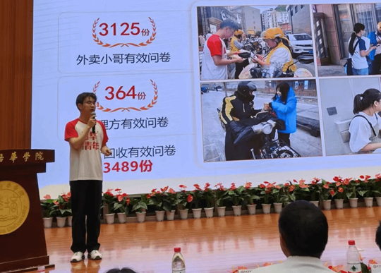 他们聚焦“零工经济中外卖骑手权益问题”,从设计第一份调查问卷到联系第一位骑手访谈,从梳理繁杂的法律法规到争论每一个对策的可行性……项目在一次次的打磨中逐渐有了清晰的轮廓,也有了温度。而这个过程,正是学校“以赛促学、以创促教”理念的生动实践。
