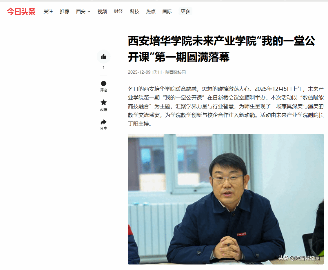 此次“我的一堂公开课”不仅是西安培华学院未来产业学院教学成果的一次集中展示,更是推动“商技融合”落地课堂、链接产业的重要实践。未来,学院将以此次活动为起点,持续探索教学与产业协同发展新路径,为培养更多适应未来产业需求的高素质人才而不懈努力!