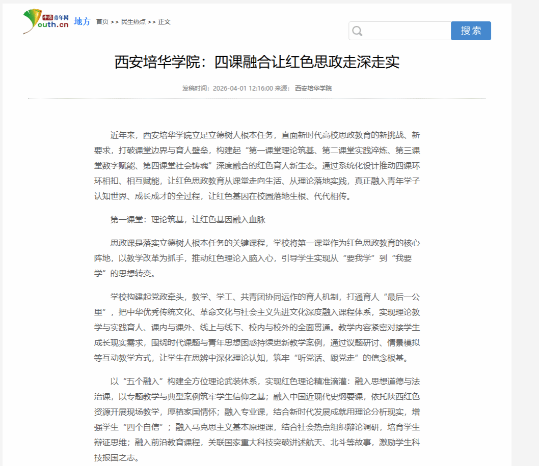 中国青年网:西安培华学院:四课融合让红色思政走深走实