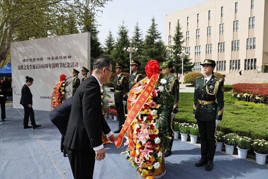 敬献花篮结束后,全体人员肃立,行三鞠躬礼,致敬老校长兴学育才之功、初心不改之德、精神永续之志。