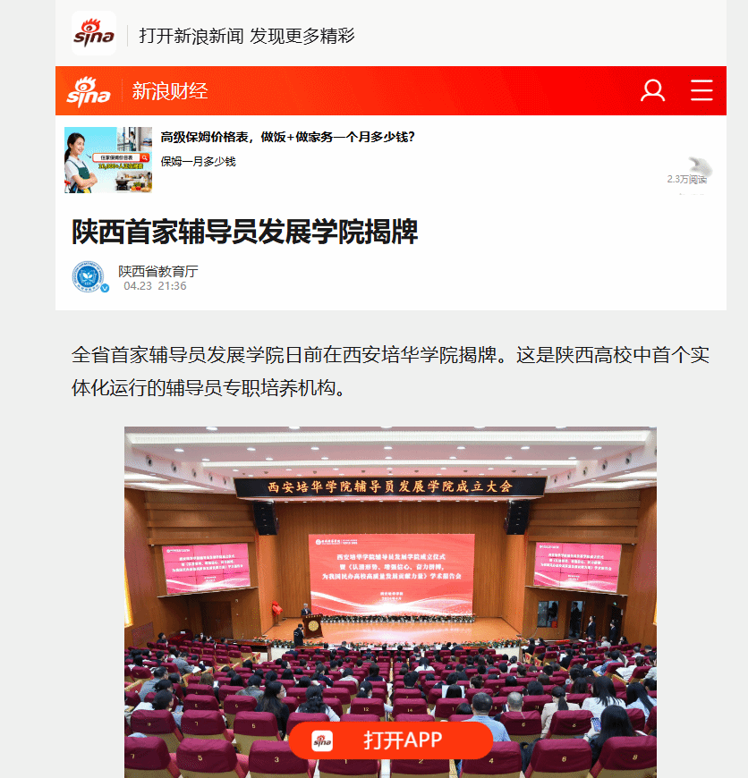 新浪新闻:陕西首家辅导员发展学院揭牌