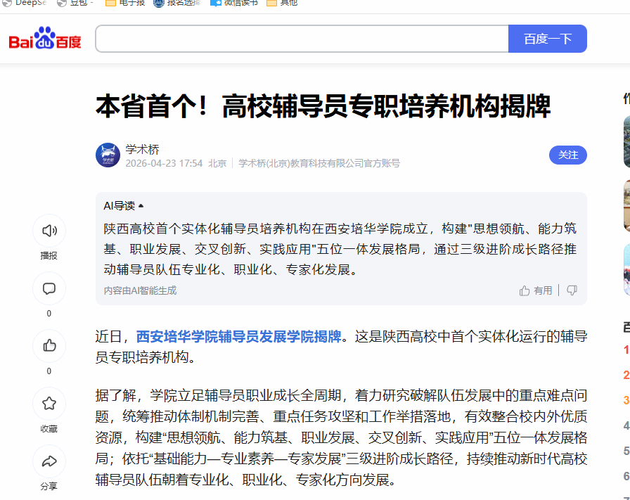 近日,西安培华学院辅导员发展学院揭牌。这是陕西高校中首个实体化运行的辅导员专职培养机构。