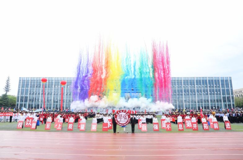 入场式视觉盛宴后,方阵表演将气氛推向顶点——老师们以《让我们一起出发》团队协作默契满分,欢笑与汗水交织拉开最燃序幕;医学院《医韵青春,律动健康》动作如手术刀般精准,医者仁心与青春活力完美交融;法学院《光亮》扇子开合似法典翻卷,舞步起落如正义天平,法治信仰随扇舞流淌;智工院队形变换如精密算法,智慧与汗水共振;国际教育学院《赤子风华,奔向寰宇》多元文化交融,世界眼光绽放;传媒与设计学院《横山腰鼓》以鼓为媒、以舞为翼,黄土地热情燃爆全场;文学院《礼乐华章》折扇开合如史册翻卷,舞步起落似山河泼墨,书写最美青春华章;会计与金融学院《盛世欢歌》以欢歌笑语献上盛世盛宴;体育学院《龙狮舞动,同心筑梦》舞龙舞狮踏浪掀高潮,动感节拍点燃全场,将开幕式推向最高潮。