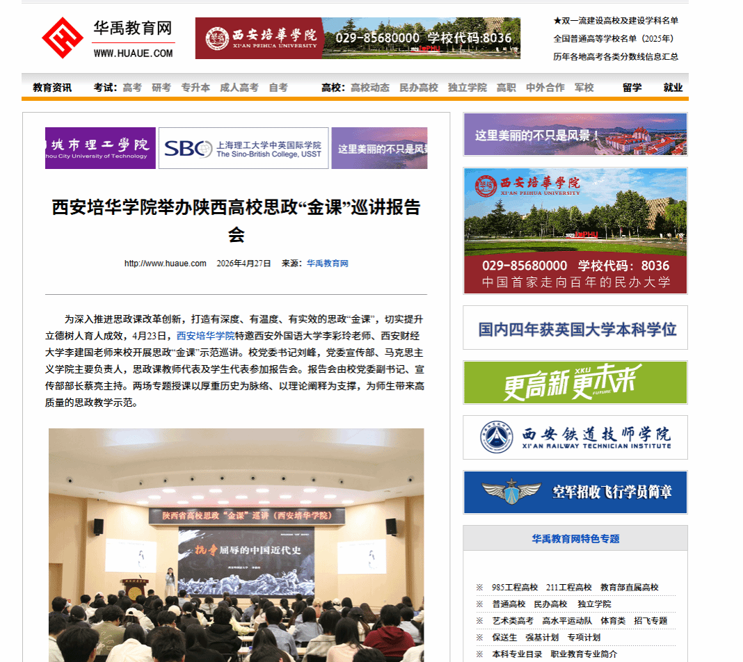 华禹教育网:西安培华学院举办陕西高校思政“金课”巡讲报告会