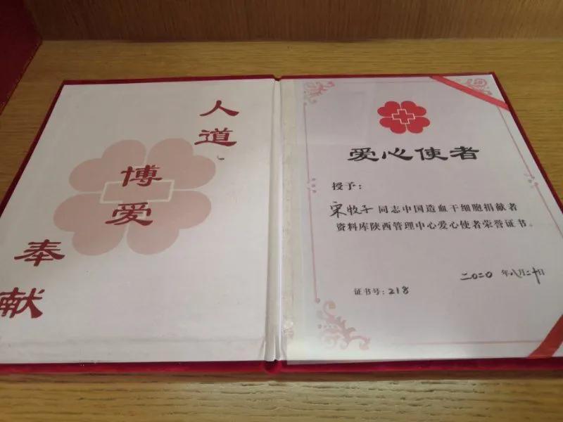 2020年6月,宋牧子接到陕西省造血干细胞捐献者资料库的电话称其与一名患有地中海贫血症的患者初步匹配成功,询问其是否愿意捐献造血干细胞。他说:“起初接到电话,心里激动得出不出话来。”