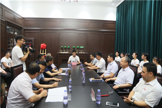 与会领导观看会计与金融学院、智能科学信息工程学院师生实践成果