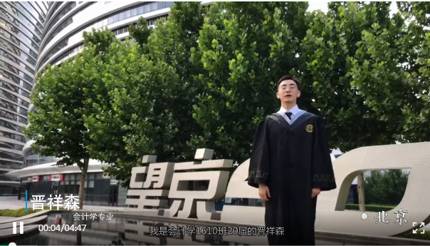 未能返校的毕业生,身穿学校邮寄的学士服,并由家人完成拨穗环节,线上送来祝福视频。