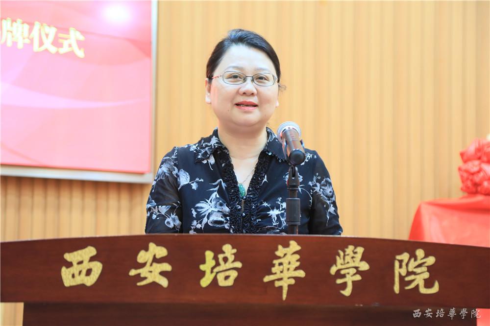 西安唐城医院董事长尉竞飞代表医院致辞。她讲到,西安唐城医院和培华一样,是一所具有光荣传统和辉煌历史的民营医院,通过80多年的建设和发展,现在成为一所科室健全,社会声誉良好的二级甲等医院。她表示今后校院将深度融合、紧密合作、优势资源互补,强化医教协同、医教相长。尽快建立和健全相关机构和机制,实现科室与教学无缝对接,开展师资双向流动,共同承担教学、科研任务,从而提升人才培养质量,为全市的医疗卫生事业发展做出积极贡献。