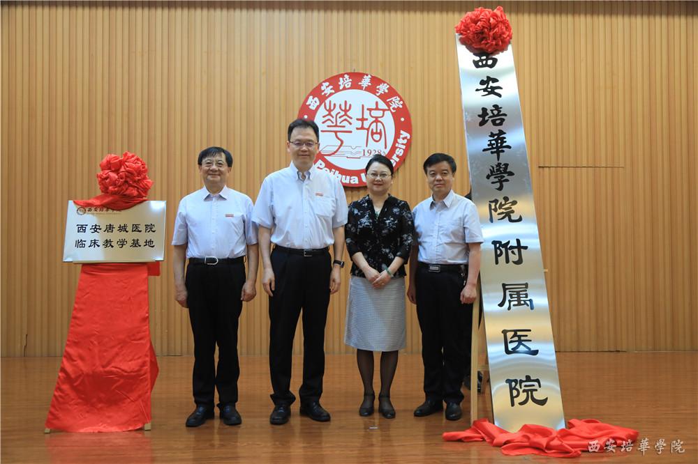 6月23日下午,西安培华学院附属西安唐城医院揭牌仪式在西安培华学院长安校区举行。陕西省政协常委、省工商联副主席、西安唐城医院董事长尉竞飞,医院党委书记兼执行院长郑瑞世,陕西省政协常委、致公党陕西省委会副主委、西安培华学院理事长姜波,校长李映方等校院领导出席了揭牌仪式。仪式由常务副校长胡俊生主持。